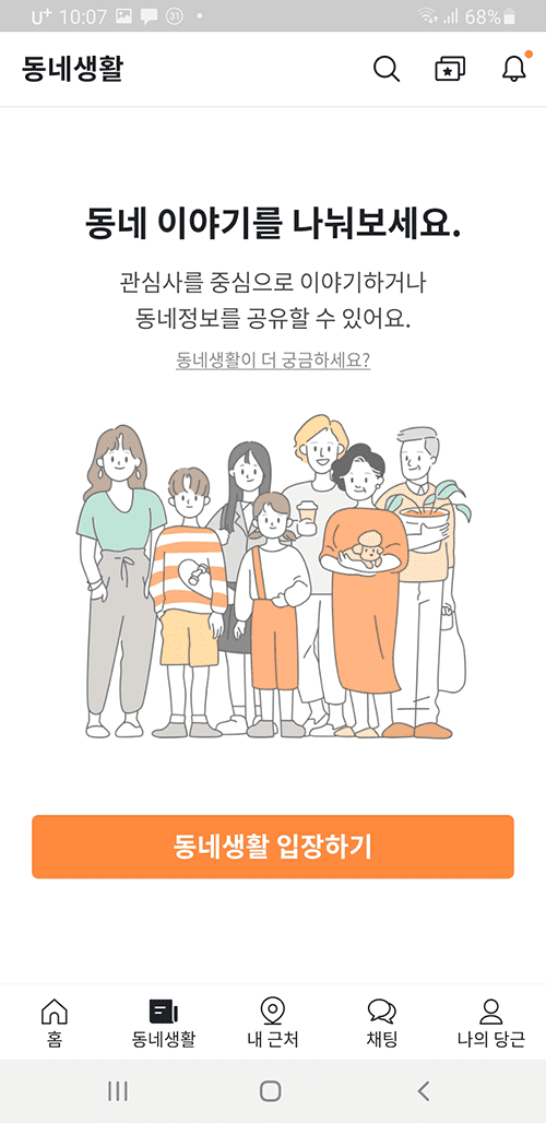 중고 거래부터 동네 정보까지, 이웃과 함께 해요. 가깝고 따뜻한 당신의 근처를 만들어요.