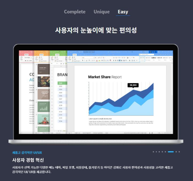 또한 다양한 메뉴테마 선택과 저장상태, 즐겨찾기 등 기존의 문서작성 프로그램에서는 볼 수 없었던 다양한 편의기능과 사용성을 돋보입니다.