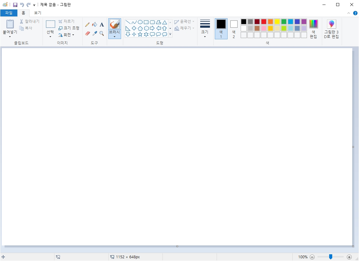만약 윈도우에 있는 기본 검색 기능이 없거나 그림판이 나오지 않는 경우가 있을 수 있습니다. 그럴 경우, 키보드 자판에서 윈도우키+r 을 입력해서 실행창을 연 후, mspaint 라는 실행어를 입력해 주시면 그림판이 열립니다.