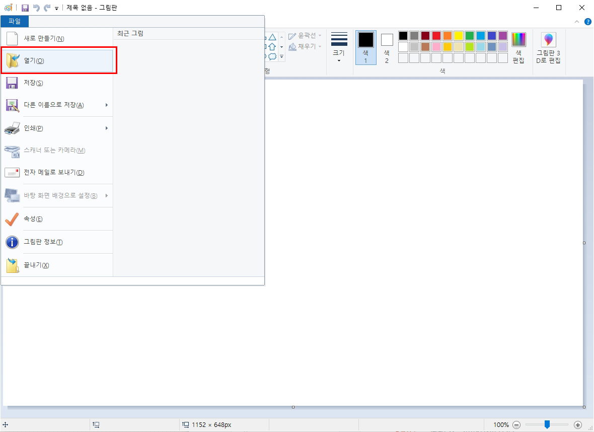 2) 그림판이 열리면, 변환하고 싶은 PNG파일을 가져와야 합니다. 상단의 파란색 파일 메뉴를 클릭해 주세요.