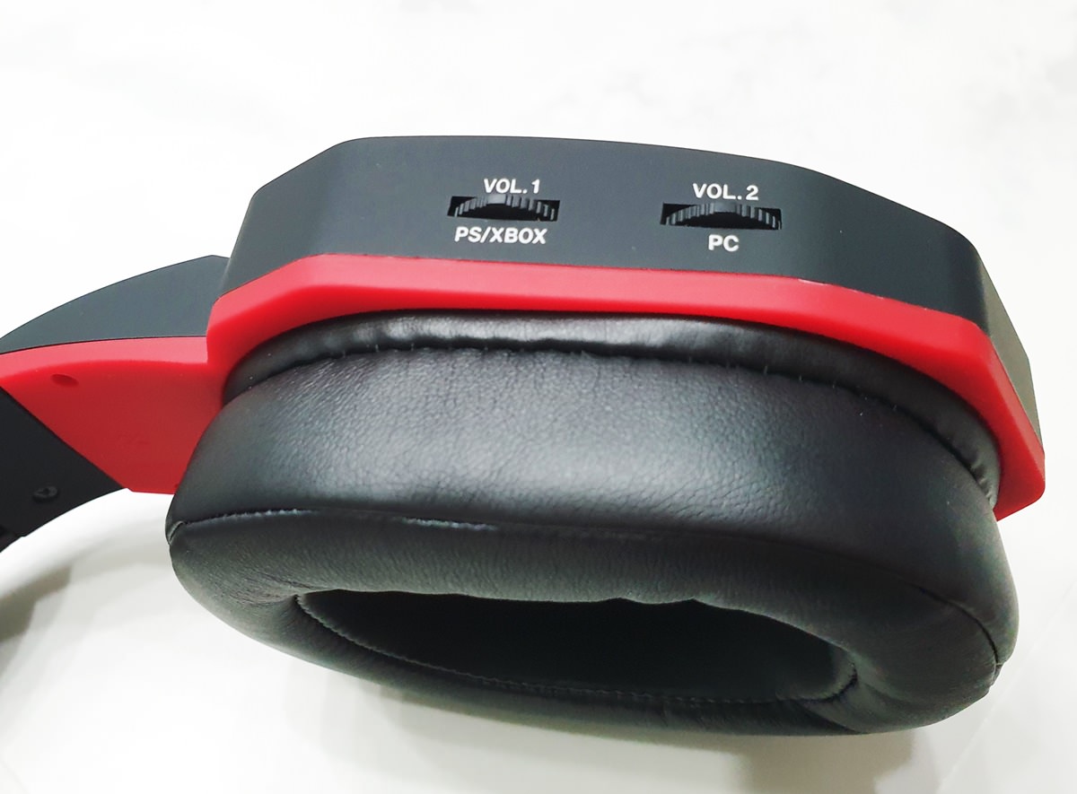 왼쪽 헤드셋에는 음량조절을 할 수 있게 콘솔게임용과 PC게임용으로 나뉘어져 있습니다.