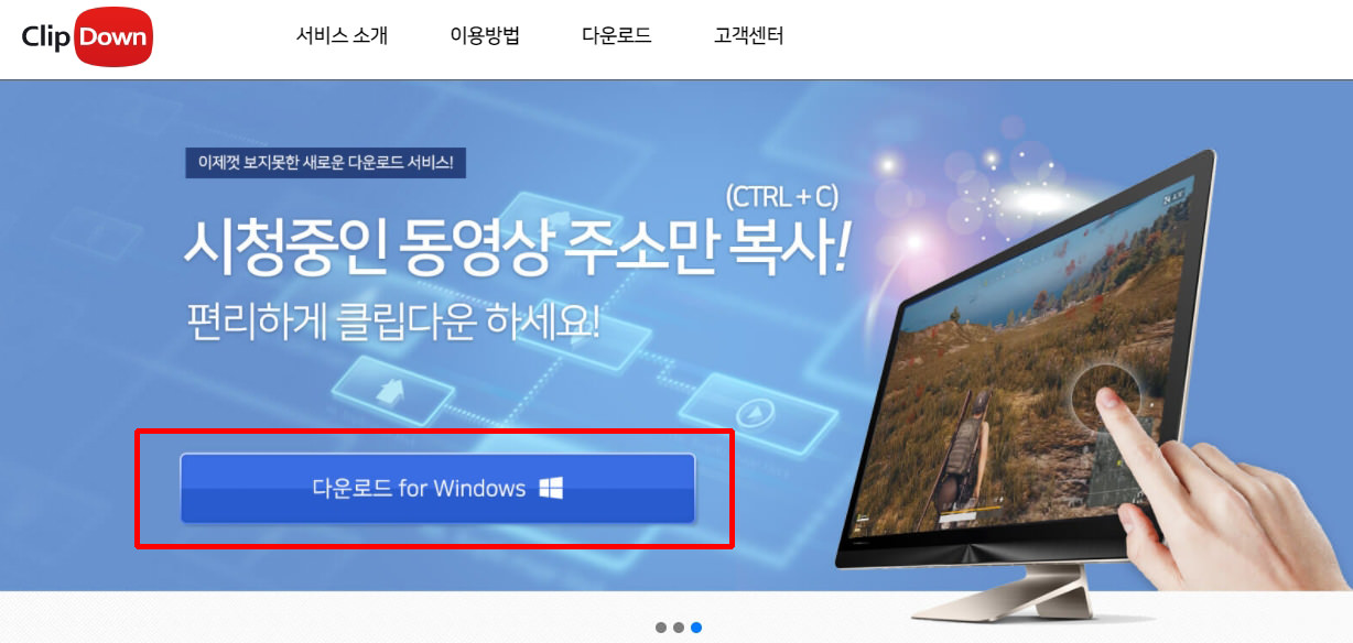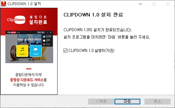 클립다운 홈페이지 상단에 다운로드 for Windows 클릭해 주세요. 그 다음 브라우저 하단에 exe파일이 다운로드 되면 클릭하여 설치를 완료해 주세요.