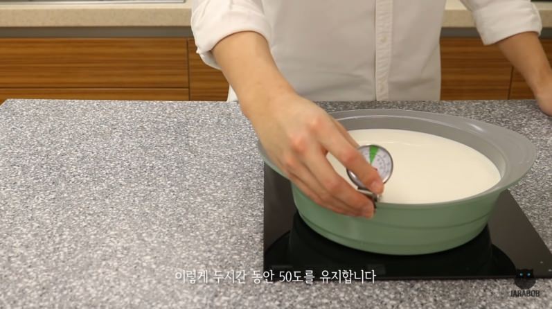 두 시간 동안 50도를 유지하며 끓여주세요.